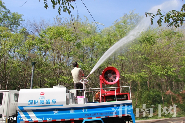 4月18日下午,淮河早報(bào)、淮南網(wǎng)記者跟隨園林養(yǎng)護(hù)人員一起,走進(jìn)舜耕山風(fēng)景區(qū)。環(huán)山路上,一輛綠化噴灑車緩慢地行駛著,車上的園林工作人員正在對(duì)環(huán)山路兩邊的樹木噴灑農(nóng)藥。