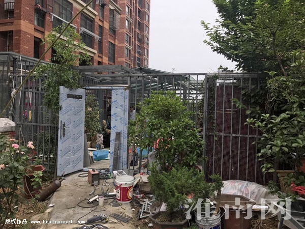 一名施工人員告訴淮河早報、淮南網(wǎng)記者,該戶業(yè)主打算將小區(qū)綠色長廊使用玻璃圍擋起來,留作自用。