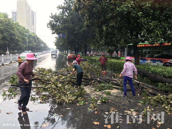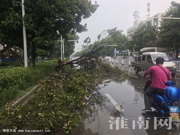 據(jù)現(xiàn)場(chǎng)冒雨清理大樹的市園林局工程公司工作人員告訴淮河早報(bào)、淮南網(wǎng)記者:“由于降水過多導(dǎo)致土壤松軟,再加樹木生長旺盛,樹冠很大,在大雨的作用下樹木傾倒,所幸沒有砸到往來車輛。市園林局得到消息之后,馬上安排園林工人冒雨到現(xiàn)場(chǎng)對(duì)倒地大樹進(jìn)行清理,盡快恢復(fù)道路交通。由于倒地的大樹樹齡較大,移植以后也無法存活,所以園林工人使用油鋸將樹木鋸成小段后,再使用車輛進(jìn)行清理。”大約半個(gè)小時(shí)左右,園林工人將倒地大樹基本清理完畢,恢復(fù)了道路通行。