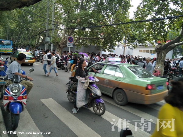 9月22日上午10時50分左右,淮河早報、淮南網(wǎng)記者來到洞山中學(xué)南門,因?yàn)楹芸炀偷揭荒昙壏艑W(xué)時間,很多家長已早早來到校門口;春釉鐖、淮南網(wǎng)記者看到林場路兩邊停滿了機(jī)動車,學(xué)校門口則是非機(jī)動車和家長駐足的地方,就在學(xué)生排隊(duì)準(zhǔn)備走出校門時,淮河早報、淮南網(wǎng)記者看到一輛出租車和一輛機(jī)動車正好停在學(xué)校門前的斑馬線兩端,很多家長帶著孩子只能繞過斑馬線過馬路。
