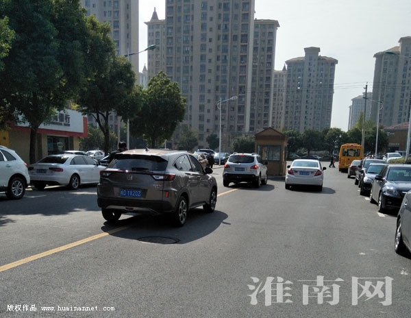 10月14日上午,淮河早報、淮南網(wǎng)記者途經(jīng)山南印象小區(qū)時,發(fā)現(xiàn)有機(jī)動車停在小區(qū)主干道的黃線上,附近居民稱,每天晚上這條黃線上停的車更多。