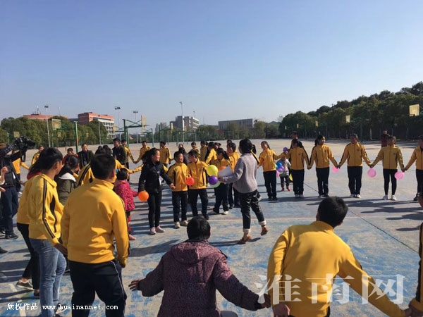 最后,100名留守兒童和淮南師范學院青年公益的大學生志愿者們一起做了互動游戲,通過游戲,孩子們大聲地笑,大聲地唱,校園內充滿著歡聲笑語。