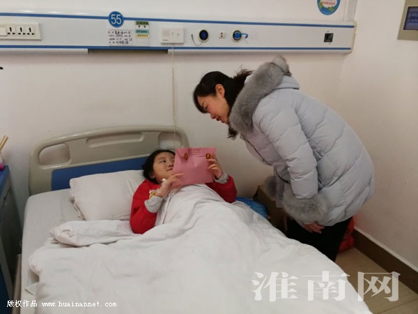 當(dāng)日,在東方醫(yī)院集團總院骨科7樓病房內(nèi),利安人壽淮南中心支公司的員工代表,將62名員工捐獻的5546元愛心款,交到了正在接受治療的小羽涵手中。