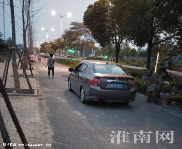 位于民裕大街西湖春天小區(qū)西側的湖畔公園吸引了不少游人前來休閑,圖為一車主將車開到公園旁的非機動車道上且逆行,還不停按喇叭驅趕行人。