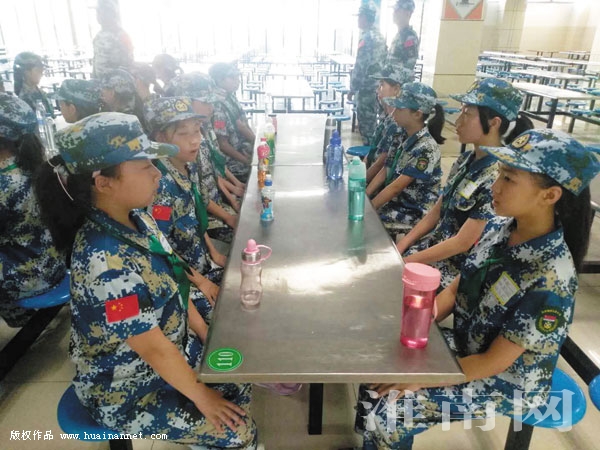 7月1日下午到達(dá)青島站時(shí)已經(jīng)中午12時(shí)40分,威海海圖騰基地的大巴車早已等在出站口,把行李運(yùn)上車,獨(dú)自離家的小記者們像小燕子似的嘰嘰喳喳說個(gè)不停,而前來接我們的教官始終沒有說話。因?yàn)橐堰^飯點(diǎn),孩子們非常饑餓,不停地問什么時(shí)候吃飯,大巴車行駛了1個(gè)多小時(shí)后,在下午2時(shí)左右開到一個(gè)飯店門口,小記者們下車排隊(duì)往飯店里走去?吹酱髲d里已經(jīng)擺好了美味的食物,孩子們一擁而上,只聽見教官大吼一聲:“干什么的?”所有孩子們立刻停下腳步,不敢發(fā)出聲音。在教官的安排下,每個(gè)孩子都找到自己的座位,可是剛坐下就被教官吼了起來,剛拿了筷子,又被教官一聲吼。眼看飯菜在眼前而不能吃,孩子們有些著急,但是教官不說話,大家都不敢動(dòng)。就這樣等到每個(gè)孩子都有座位后,教官才開始說起餐前禮儀,“感恩天地,滋養(yǎng)萬物,感恩父母,養(yǎng)育之恩……”教官說一句,孩子們跟著說一句,因?yàn)槁曇舨粔蝽,連續(xù)說了三遍,最后一遍把整個(gè)飯店都震動(dòng)了,還吸引了在飯店吃飯的其他食客。教官說:“坐”!所有孩子整齊地坐下,紛紛端起飯碗大口吃飯。而從這一刻起,孩子們知道以后的每一頓都是如此,無論多餓,餐前的感恩語猶如誓言,統(tǒng)一打飯、統(tǒng)一吃飯將是一種不變的儀式。