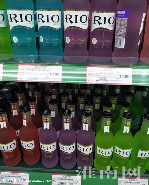 14日上午,淮河早報、淮南網(wǎng)記者專門來到該超市,如何女士所說,一整排貨架上都是同樣的瓶子,只是顏色不同而已。視線正前方是“RIO”,而視線的下方就是“RLO”,“RLO”中的“L”一橫特別細(如圖),如果不彎腰,只是視線往下看的情況下,那一橫真得很難發(fā)現(xiàn)。看過價格標簽后發(fā)現(xiàn)“RIO”是12.8元,而“RLO”是5.9元;春釉鐖、淮南網(wǎng)記者隨機詢問了一些顧客,很多人都誤認為下面的酒是快過期做促銷的,根本沒想到并不是一種酒。所以,淮河早報、淮南網(wǎng)記者提醒廣大消費者,在購物時一定要看清商品,不要被低價蒙蔽雙眼,理性購物。(記者)