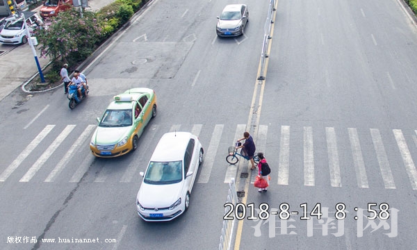 8月14日,淮河早報(bào)、淮南網(wǎng)記者在潘集區(qū)長(zhǎng)江路、黃山路等路口蹲點(diǎn)觀察!凹t燈停,綠燈行,遇到黃燈停一!边@些最基本的交通規(guī)則,在兒時(shí)就耳熟能詳。可是,就是這眾所周知的交通規(guī)則,卻被不少市民拋到了腦后。雖然大部分市民都能遵守交通信號(hào)燈的指示,有序出行,但也有部分行人、電動(dòng)車在紅燈下依然我行我素,有部分行人及電動(dòng)車不顧危險(xiǎn),在密集車流中左突右沖,更“牛”的是竟有出租車司機(jī)站在十字路口攬客。一條斑馬線,承載著城市交通的安全與文明,規(guī)范“禮讓斑馬線”更是城市文明最直觀的體現(xiàn)。