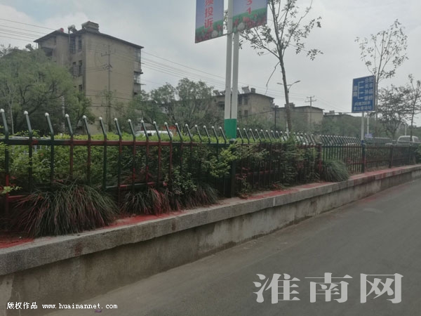 9月2日上午,淮河早報(bào)、淮南網(wǎng)記者經(jīng)過(guò)泉山路西側(cè)泉山公交站旁時(shí)看到,一段綠化帶邊上的護(hù)欄、植被和臺(tái)面上均被噴上了紅色油漆,估計(jì)有10米長(zhǎng),不僅破壞了市容環(huán)境,也破壞植被生長(zhǎng)。(記者)