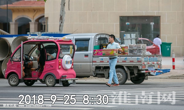 這個十字路口由于不在中心鬧市區(qū),路上行人不多,行駛在這條路上的只有一些三輪車、電動車。