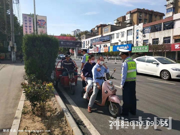 圖三:交警勸導(dǎo)電動(dòng)車主駛?cè)敕菣C(jī)動(dòng)車道