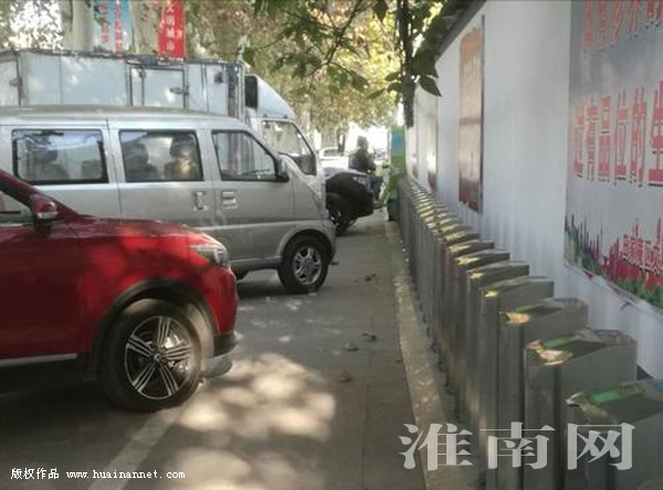 近日,在國(guó)慶西路金茂酒店公交站附近的一處公共自行車停放點(diǎn),淮河早報(bào)、淮南網(wǎng)記者看到,停車樁前公共自行車停放區(qū)雖用白線劃出,卻仍被四輛機(jī)動(dòng)車占據(jù)。(如圖)(記者)