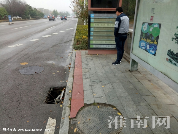 近日,淮河早報(bào)、淮南網(wǎng)記者在淮河大道民惠街公交站臺(tái)前看到,路邊一雨水井井篦損毀嚴(yán)重,導(dǎo)致井口大開,給來往市民及車輛帶來安全隱患。