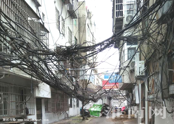 12月5日,淮河早報、淮南網(wǎng)記者在田家庵區(qū)陳家崗小區(qū)走訪了解到,小區(qū)巷內散亂著的電纜讓這里的居民感到十分不舒服,放眼看去,這些電纜有的搭掛在居民的窗戶上,有的散落在墻邊上,有的像蜘蛛網(wǎng)一樣盤踞在過往行人的頭頂上,不僅影響市容還非常不安全。(記者 蘇國義 實習生 孫穆涵 編輯 湯寧)
