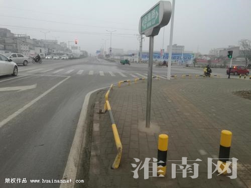 12月21日,淮河早報、淮南網(wǎng)記者看到,在合淮路與朝陽西路交叉口東南側(cè)路邊,有一處隔離樁遭破壞,已松動變形。 記者 攝
