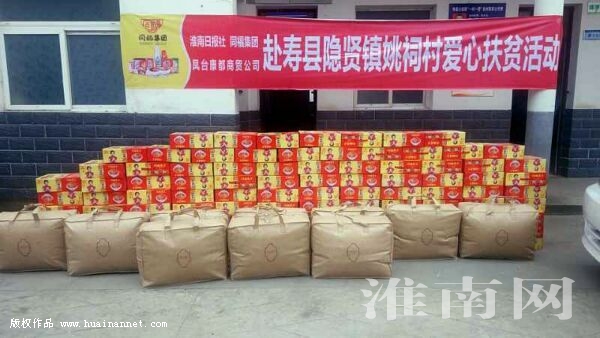 1月3日、4日,淮南日報(bào)社聯(lián)合同福集團(tuán)和鳳臺縣康都商貿(mào)有限責(zé)任公司在壽縣、潘集兩地開展了“扶貧送溫暖”捐助活動(dòng)。三方人員冒著嚴(yán)寒,來來回回奔波數(shù)百公里,將價(jià)值2萬余元的220余箱同福碗粥、40床高檔棉被,先后贈(zèng)送到壽縣隱賢鎮(zhèn)姚祠村、潘集區(qū)祁集鎮(zhèn)許崗村、夾溝鎮(zhèn)華李村的貧困村民手中,給他們送去新年祝福。物資發(fā)放現(xiàn)場,姚祠村一名“五!崩先思(dòng)得眼圈泛紅,他說,近兩年在扶貧工作人員的幫助下,他的生活變得越來越好,他沒想到,天這么冷,大家還惦記著他,給他帶來這么多禮物,他心里暖洋洋的。