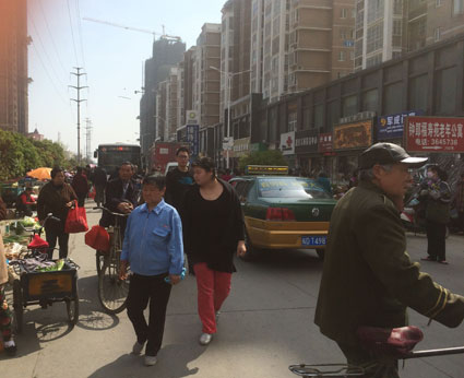 4月1日上午9時(shí)50分許,淮河早報(bào)、淮南網(wǎng)記者來(lái)到這條道路上,按照市民反映的情況,淮河早報(bào)、淮南網(wǎng)記者從該路的西頭往東頭走,西頭主要是賣水果、蔬菜的攤點(diǎn),偶而有賣衣服的攤販在叫賣,一路走著,不時(shí)遇上幾個(gè)騎著電動(dòng)車或自行車的,稍不留神就會(huì)碰上。還有的市民可能在買菜時(shí)遇到熟人,他們也沒(méi)有考慮太多,直接就站在道路中間說(shuō)笑聊天,直到汽車的喇叭聲響起,才慢悠悠地走到旁邊接著聊。不僅如此,還有個(gè)別幾輛三輪車竟擺在路中間,車主也不知在哪,導(dǎo)致從小區(qū)出來(lái)的私家車無(wú)法前行,不停地按著喇叭,希望車主能早點(diǎn)把三輪車挪走。