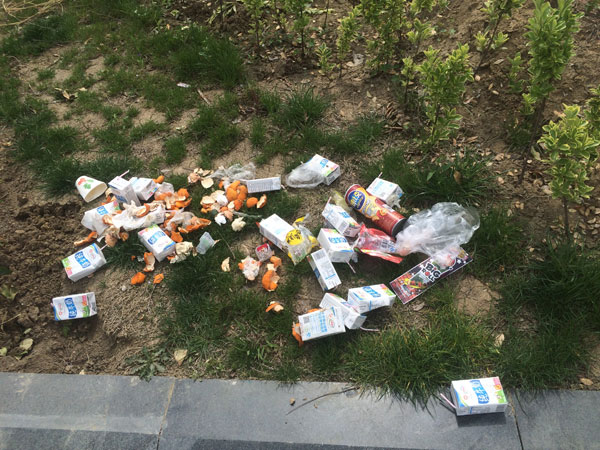 圖一:垃圾桶周?chē)榈亍伴_(kāi)花”