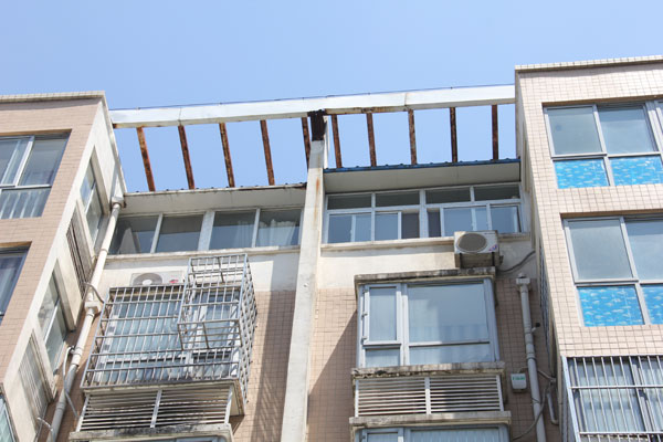 在該小區(qū)采訪時,很多居民告訴淮河早報、淮南網(wǎng)記者:“自從小區(qū)入住開始,就有頂層住戶在六樓房頂加蓋房屋,雖然小區(qū)居民多次向物業(yè)反映,但是一直沒有有效制止,導(dǎo)致現(xiàn)在頂層幾乎全部被加蓋成為房屋。而小區(qū)房屋承重是有限的,像這樣憑空增加了一層房屋,我們很擔(dān)心會對房屋承重造成影響。而近期一樓的住戶又開始在院子里蓋房,房頂一直蓋到二樓的窗戶下,目前小區(qū)內(nèi)已經(jīng)有多戶一樓居民院子內(nèi)違建已經(jīng)建成,而至今物業(yè)也沒有有效地管理!