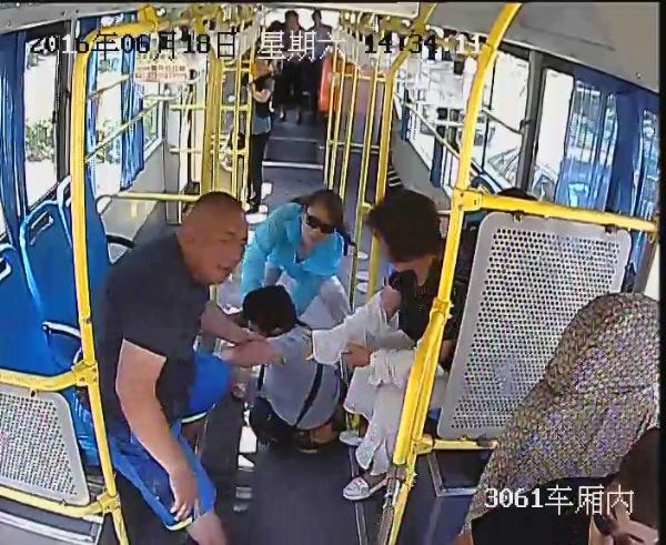 高舜看到男子沒事,又趕緊回到車內(nèi),了解車內(nèi)乘客情況。通過車內(nèi)監(jiān)控視頻,淮河早報(bào)、淮南網(wǎng)記者看到,當(dāng)時(shí)車內(nèi)乘客并不是很多,就在公交車快到舜耕站時(shí),一名女性老年乘客從前排座位起身,走向后門位置。突然,公交車緊急剎車,老人就摔倒在前排座位間的走道上。其他乘客見狀,就趕緊將老人扶起,幫忙撿拾老人的物品。