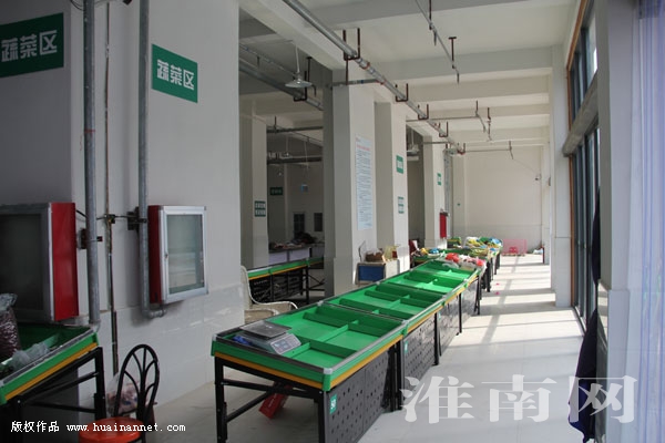 得知這一信息后,淮河早報(bào)、淮南網(wǎng)記者于2月7日上午10時(shí)左右來到西湖春天小區(qū)。在小區(qū)西門的室內(nèi)菜市場內(nèi),近百個(gè)全新的鋁合金攤位整齊排列,蔬菜區(qū)、肉食區(qū)、熟食區(qū)和水果區(qū)十分規(guī)范,白色的瓷磚地面顯得潔凈明亮,雖然室外氣溫已經(jīng)到零下,但是室內(nèi)卻沒有一絲寒意。然而這樣配套設(shè)施完善的室內(nèi)菜市卻冷冷清清,大多數(shù)攤位都是空置的,只有零星幾個(gè)商販在這里經(jīng)營,整個(gè)室內(nèi)菜市場內(nèi)沒有一個(gè)前來買菜的居民,顯得十分空蕩。
